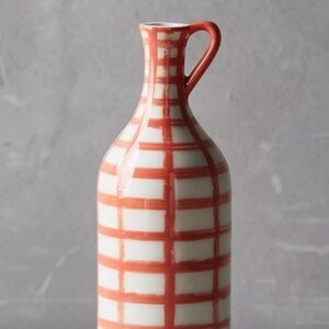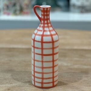 A a cute and quirky colorful pop of color with this medium pink picnic check pattern Milos vase by Anthropologie ~ ideal for cottage and beach decor styles ~ also check out the other 4 vases in the collection, sold separately ~