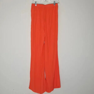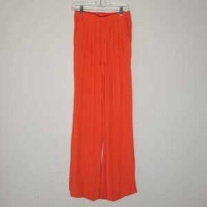 Harlyn for Anthro Sabie wide leg coral orange pants. Lightweight pants. Side pockets. Elasticized waist.