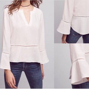 Soft pullover Henley with bell sleeves and crochet ladder details on sleeves and waist. Cloth and Stone purchased at Anthropologie in 2019. NWT. Great for spring! The color is pale Chambray Blue - NOT WHITE. I only have one picture of a white one because it shows the detail and how it fits on the model. Style: Washed Aria Henley. I will add pics of actual shirt, tag, and dimensions.