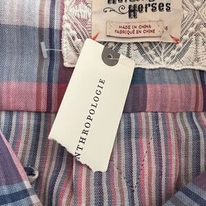 NWT Anthropologie Holding Horses Hi Lo Roll Tab Sleeve Plaid Tunic