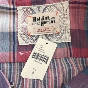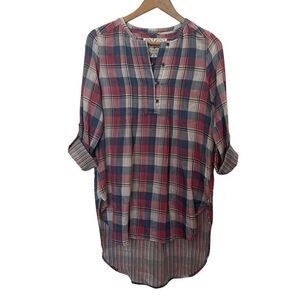 NWT Anthropologie Holding Horses Hi Lo Roll Tab Sleeve Plaid Tunic Size 4