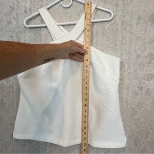 NWT Anthropologie Ivory Knit Top Sz L Cross Straps Front & Back