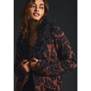 NWT Anthropologie Jacquard Cardigan Sweater in Navy/Marin size X-large