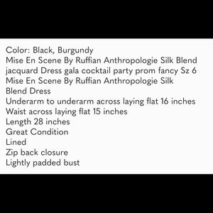 NWT, never had a chance to wear it. Burgundy and black jacquard fabric. Layered, fully lined, zip back with some boning for support. Perfect for the holidays!