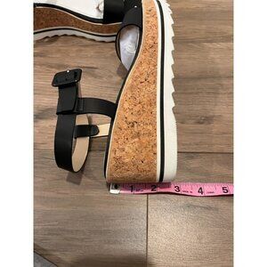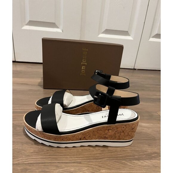 NWT Anthropologie Jon Josef Black Leather Cork Wedge Sandals Size 9