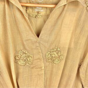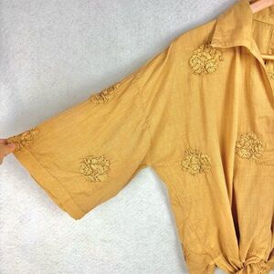 NWT Caite & Kyla Seo Bamboo Yellow Handmade Embroidered Cotton Blouse Sz S