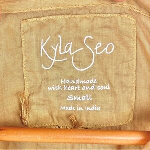 Caite & Kyla Seo is known for making beautiful handmadee garments. Everything including the embroidery thread is hand dyed. This garment's dying and washing is a completely manual process. Smudges, irregularities in the thickness and color may occur. These are natural characteristics and should not be considered defects.