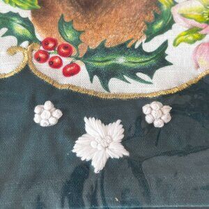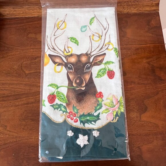 New with tags (NWT) Lou Rota for Anthropologie Twelve (12) Days of Christmas Tea Towel, now retired. This charming holiday dish towel features a whimsical stag deer or reindeer illustration and embroidered flowers.