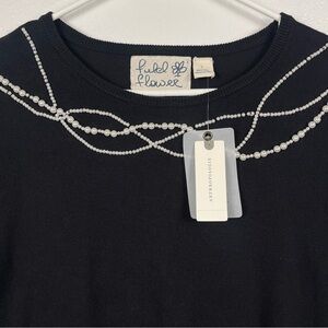 NWT Anthropologie Large Pearled Collar Black Cotton Cashmere Pullover Sweater