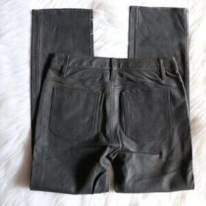 NWT Anthropologie Leather Pants Size 25 Green Black High Rise Straight Leg Lamb