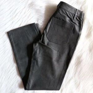 NWT Anthropologie Green Black High Rise Straight Leg Lamb Leather Pants Size 25