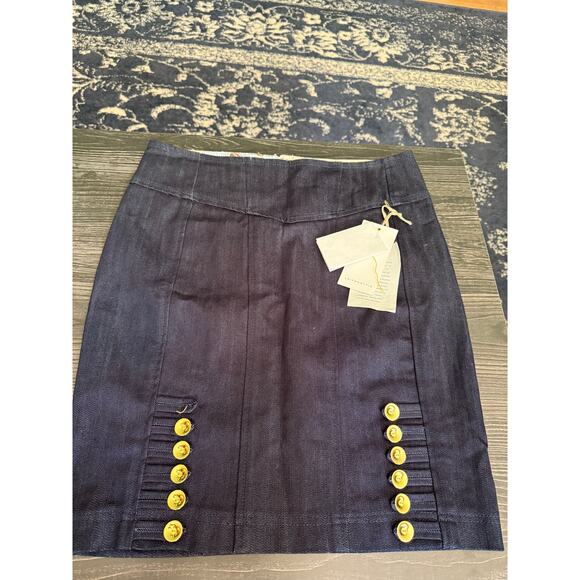 NWT Anthropologie Leifsdottir Gold Button Military Denim Mini Skirt Sz 6