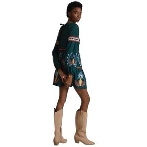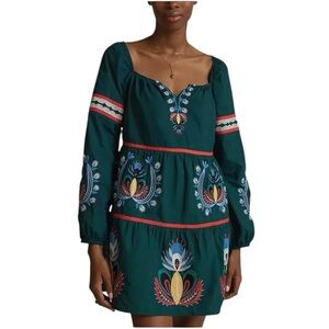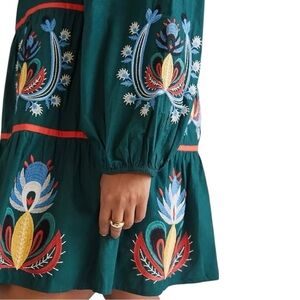 NWT Anthropologie Let Me Be Embroidered Tunic Dress In Green Size M