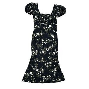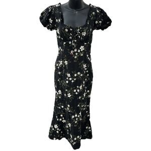 NWT Anthropologie Linen Blend Puff-Sleeve Sweetheart Midi Dress