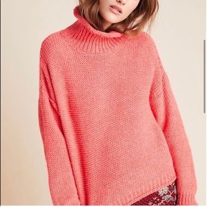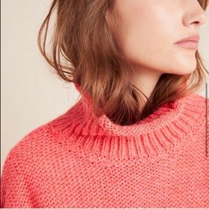 NWT new Anthropologie Lottie Textured Wool blend mock neck sweater sized XS. Slightly cropped. Is oversized, please see measurements. Also please note the color of the sweater is a little darker than the stock photos, is a more darker salmon pink. Retailed originally for $130.