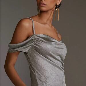 Brand new with tags Anthropologie off the shoulder/ cold shoulder metallic blouse top. Color is called neutral, but is a really gorgeous silver gray metallic color.