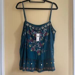 NWT Anthropologie Luzia Cropped Cami Embroidered Teal Floral Sz XL