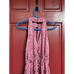 NWT Anthropologie M blush animal leopard print satin halter midi dress