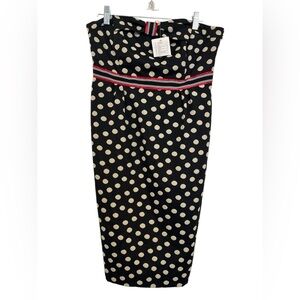 NWT Anthropologie Maeve Black Beige Polka Dot Strapless Retro Pinup Dress Size 8