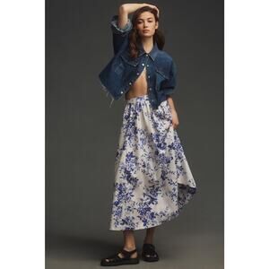 The NWT Anthropologie Maeve Blue Poplin Midi Skirt in a size large is a versatile and stylish addition to any wardrobe. Crafted from a lightweight poplin fabric, this midi skirt offers both comfort and elegance, making it ideal for a variety of occasions. The rich blue hue adds a pop of color that can easily be paired with both neutral and bold tops.