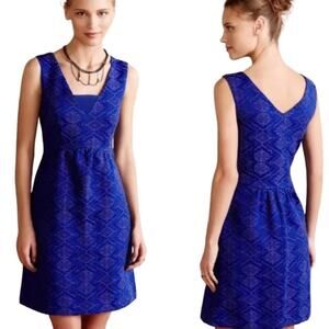 NWT Anthropologie Maeve Blue and Purple Aztec Fit and Flare Dress - Size 2