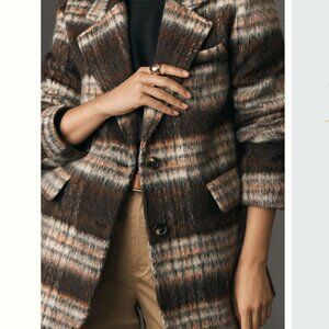 NWT Anthropologie Maeve Brushed Plaid Blazer Coat Jacket Small Fall Wool Blend