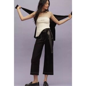 New with tags. Anthropologie Maeve “Colette” wide-leg linen pants in black with white contrast stitching, size 24 petite.