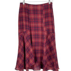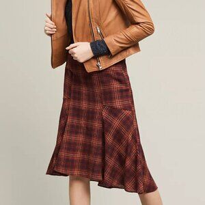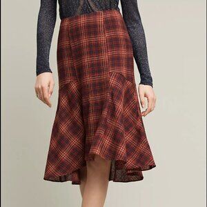 NWT Anthropologie Maeve Crimson Plaid Wool Flounce Hem Midi Skirt Women's 4