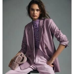 NWT Anthropologie Maeve Double Breasted Linen Blazer Lilac Sz 12 Modern Career