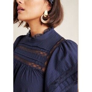 NWT Anthropologie Maeve Fleetwood Mini Ruffle Dress Navy Blue Size 00 MSRP $150