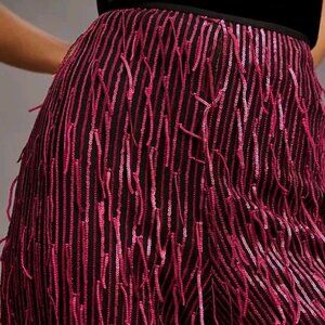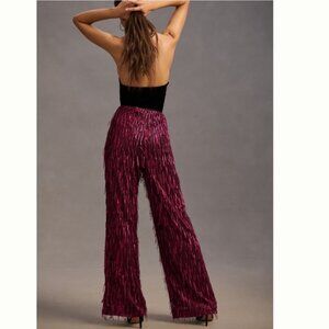 NWT Anthropologie Maeve Fringed Sequined Wide-Leg Pants 8