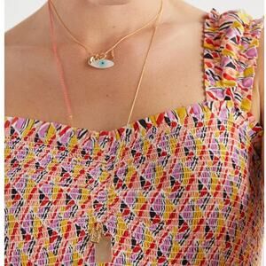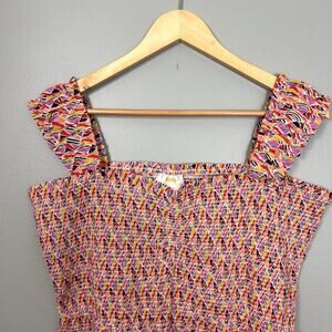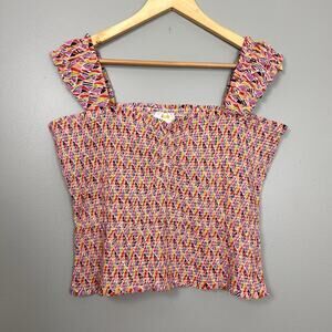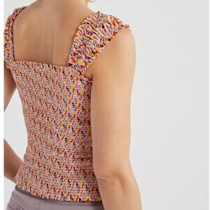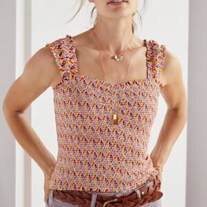 NWT Anthropologie Maeve Kaleidoscope Smocked Tank Top Ruched Boho Blouse Large