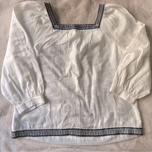 NWT Anthropologie Maeve Liyah Embroidered Top Cotton Linen Navy White Size 8