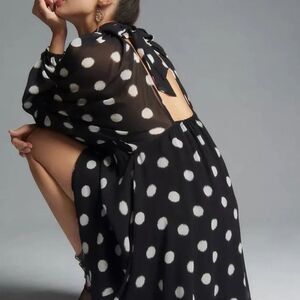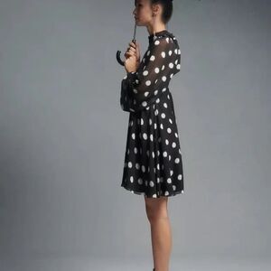 NWT Anthropologie Maeve Long-Sleeve Sheer Mini Dress, polka dot dress, romantic style, feminine fashion, trendy mini dress, lightweight fabric, sheer sleeves, elegant details, date night outfit, party dress, chic and stylish, classic black and white, modern vintage, flirty and fun, versatile wardrobe piece, special occasion dress, fashion-forward, Anthropologie exclusive.
