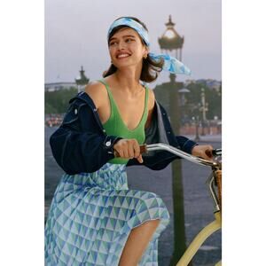 Crafted with a blend of cotton, viscose, nylon, and elastane, this rib-knit tank offers a soft and stretchy fit that hugs your curves in all the right places. The pretty green color adds a touch of freshness to your wardrobe, while the V neckline and fixed straps provide an alluring and flattering look.