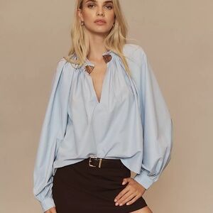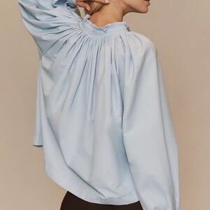 NWT Anthropologie Maeve Pleated Trapeze Blue Top XL