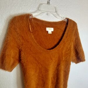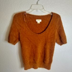 Anthropologie Maeve Scoop Neck Eyelash Sweater Tee cedar color Sz Xs