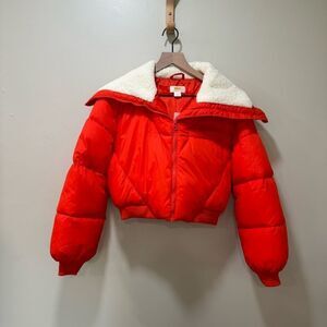NWT Anthropologie Maeve Sherpa Collar Cropped Puffer Jacket sz XXS