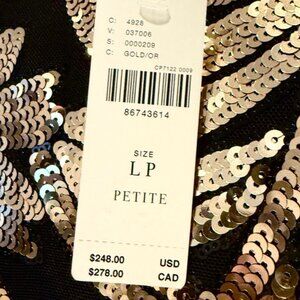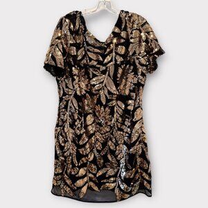 New with tag. Anthropologie Maeve Short-Sleeve Sheer Embellished Mini Dress Sz Large Petite. Shimmer in this stunning gold and black sequin dress, perfect for any special occasion. Polyester, elastane; viscose, elastane lining. Relaxed sheath style. So comfortable! Flat lay measurements: Pit to pit: 21" Length: 34" Waist: 20" Hips: 21" . Excellent clean new with tag never worn condition.