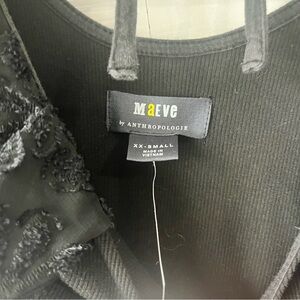 NWT Anthropologie Maeve Size XXS Draped-Sleeve Top Black