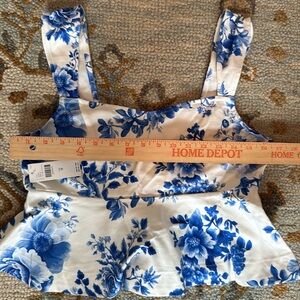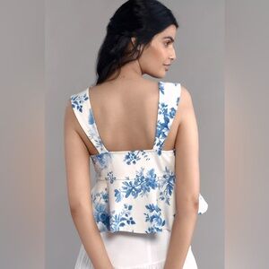 NWT Anthropologie Maeve Square Neck Peplum Tank Top in Blue Floral