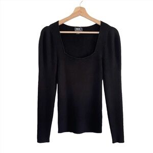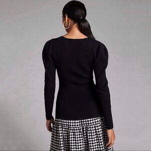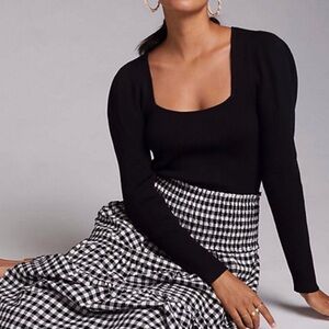 NWT Anthropologie Maeve Square Neck Ribbed Knit Sweater Top Black Small