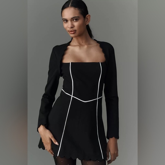 NWT! Anthropologie / Maeve Square-Neck Scalloped Hem Long-Sleeve Mini Dress