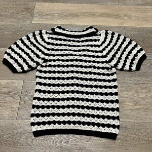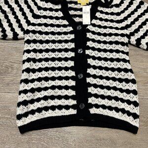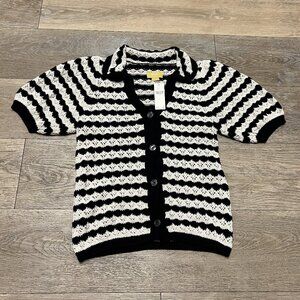 NWT Anthropologie Maeve Striped Crochet Sweater Knit Short Sleeve Cardigan Small