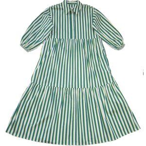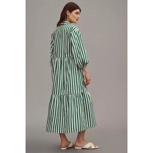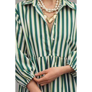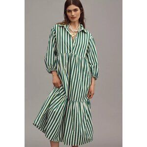 NWT Anthropologie Maeve The Bettina in Chartreuse Stripe Tiered Shirt Dress M