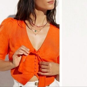 NWT Anthropologie Maeve Tie-Front Linen Blend Blouse Orange Size 12