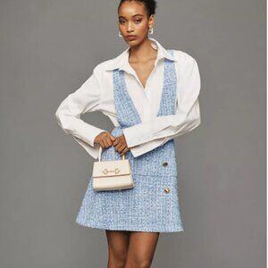 Sold out on the Anthro website! Brand new with tags, light blue and white with gold accent buttons, side zipper, size 8. This is a super fun and cute tweed style pinafore skirt! I never had the chance to wear it, hoping it will be a better addition to someone else's closet.