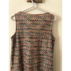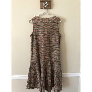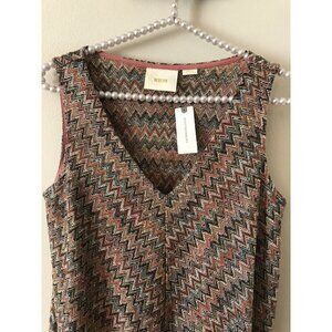 This is a women's NWT blue Westwater brown knit chevron patterned sleeveless dress from Maeve by Anthropologie, size Small. This dress has a slight high-low design and a slip dress underneath that can be removed.Acrylic/Polyester Blend