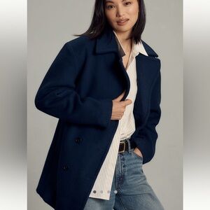 NWT Anthropologie Maeve double breasted wool blend coat in navy blue