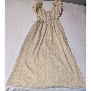 NWT Anthropologie Mare Mare Flutter-Sleeve Maxi Dress Ruffle XS Neutral New Length approximately 51 inches Armpit to armpit approximately 16 inches Ink mark through label to avoid in store return.